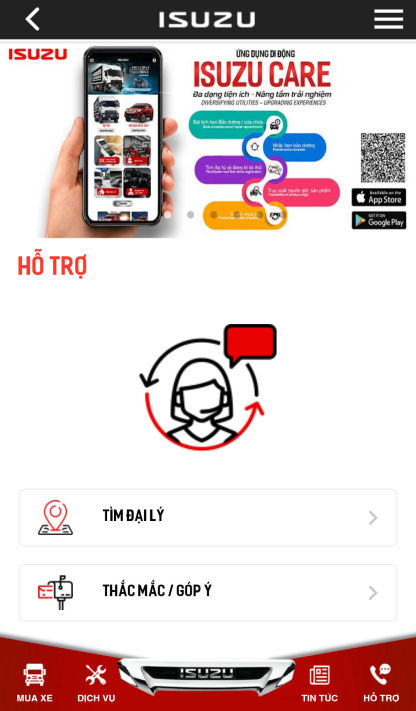 ISUZU Care - provides all necessary information for customers about: